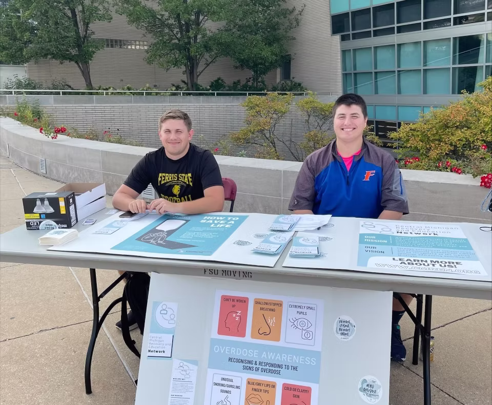 We strive to train future workforce regarding Substance Use Disorder prevention, treatment, and recovery. through training Ferris State students, faculty, and staff. We visit classrooms, and train resident hall student leadership and staff, library staff, student learning assistant workers and staff, and health center staff. We train students in tabling events throughout the academic year and in special events, such as deliberative dialogues and other fun events such as a game night, all of which include Narcan and at-home-medication disposal training.